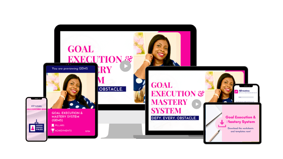 Goal Execution and Mastery System (GEMS) is a Scripture-based transformational coaching program, where over 10 weeks, I teach you step by step how to effortlessly achieve your most audacious goals and desires (especially the ones you’ve tried and failed at so many times).